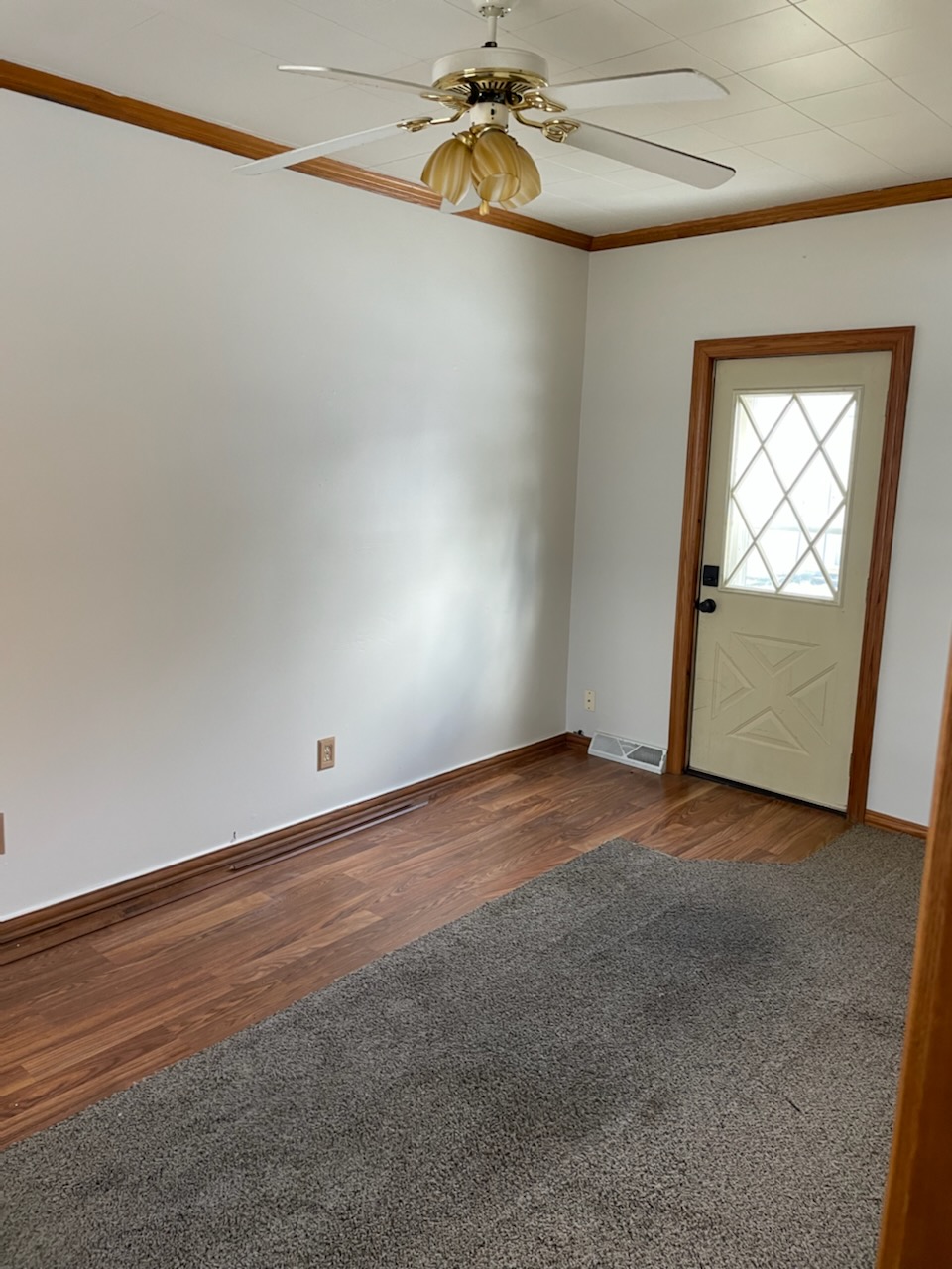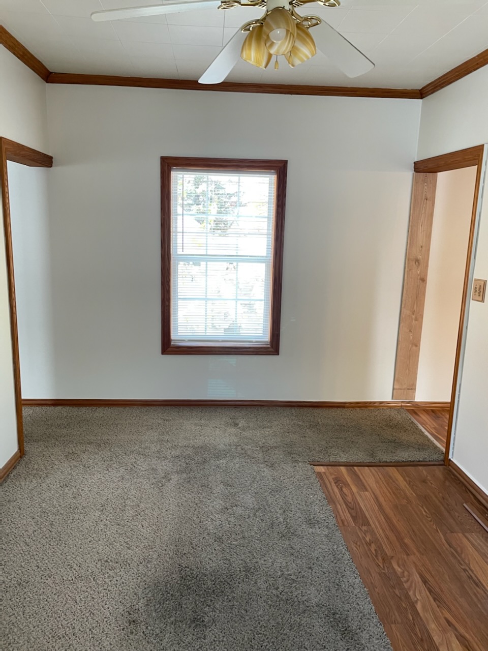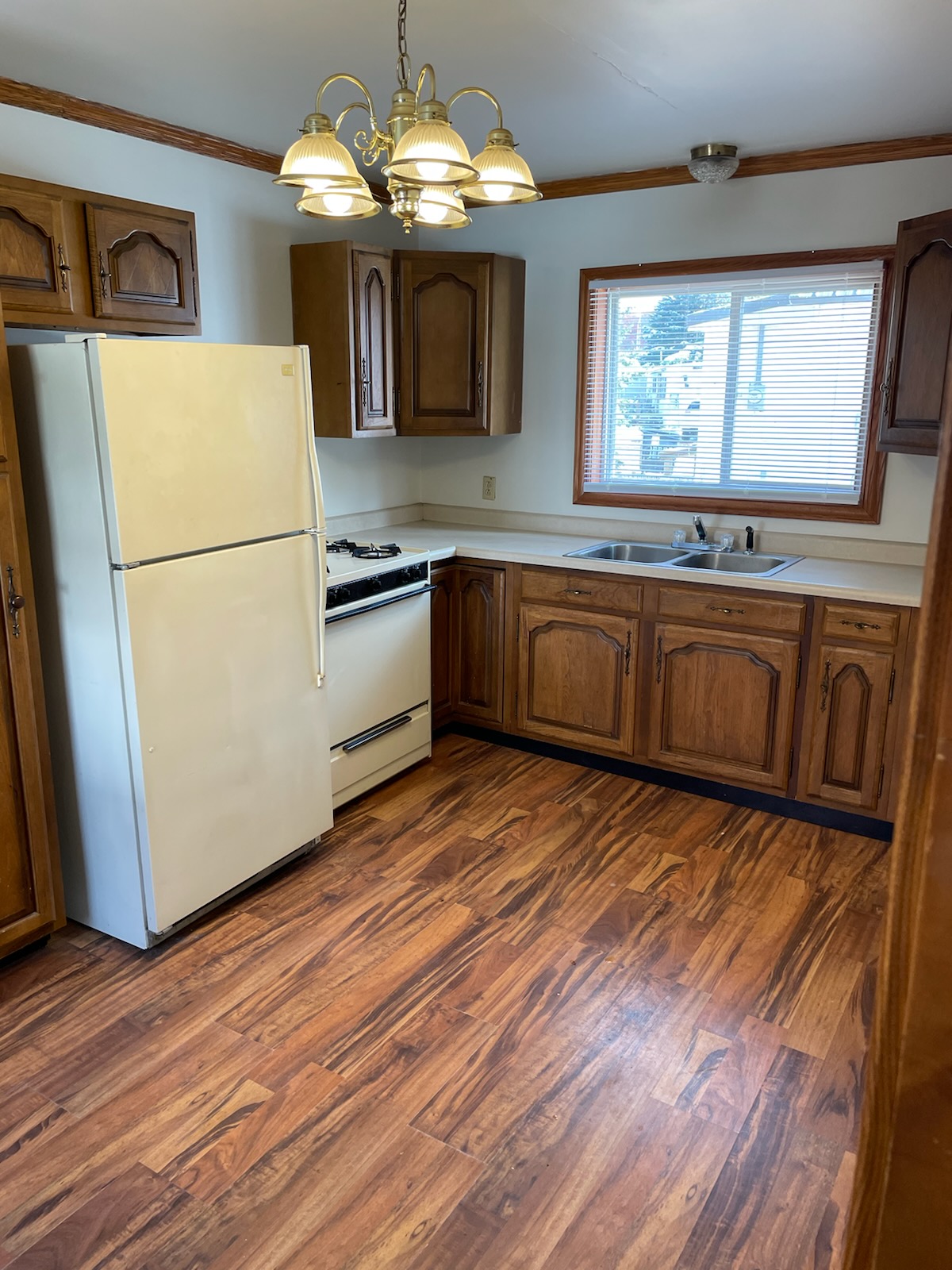 Two bedroom home in downtown Phelps. Bedrooms are nice sized with a well-equipped kitchen and nice living area. The house has natural gas heat, and is freshly painted. There’s a steel roof and vinyl siding…completely maintenance free exterior.