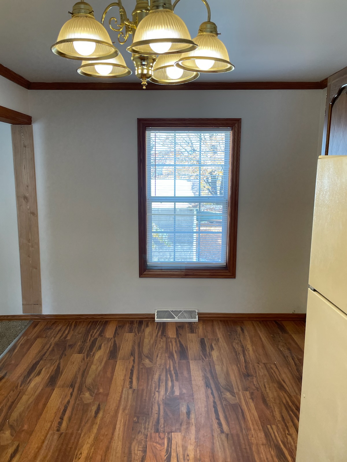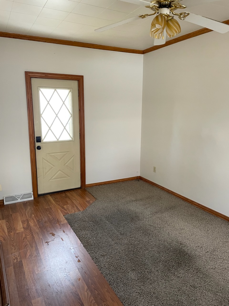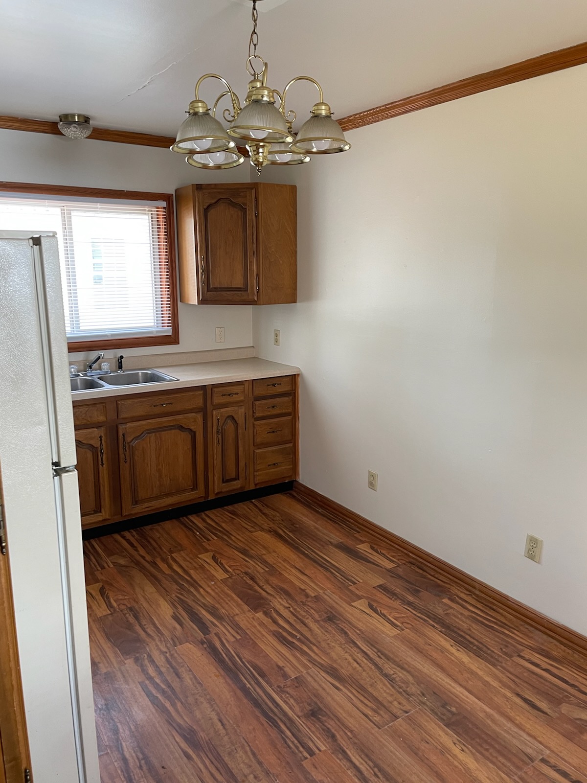 Two bedroom home in downtown Phelps. Bedrooms are nice sized with a well-equipped kitchen and nice living area. The house has natural gas heat, and is freshly painted. There’s a steel roof and vinyl siding…completely maintenance free exterior.